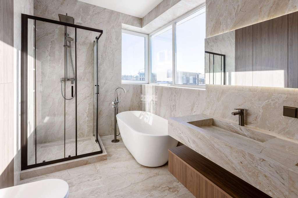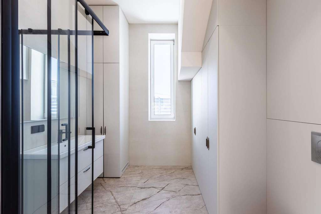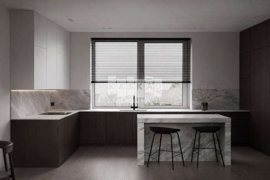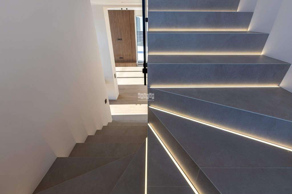 Фасад облицован белоснежной штукатуркой, благородным ригельным кирпичом и высококачественными тёмно-серыми панелями, напоминающими планкен. Большие окна наполняют внутренние пространства солнечным светом и теплом, создавая приятную атмосферу. Лаконичный интерьер гармонично сочетает кремовые оттенки с фактурами камня и дерева.