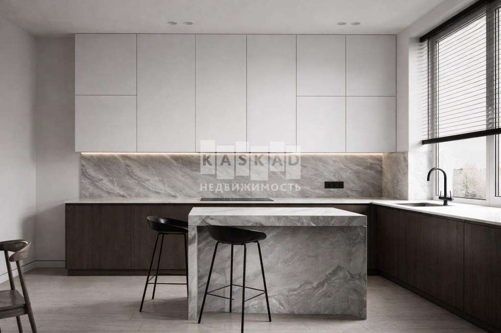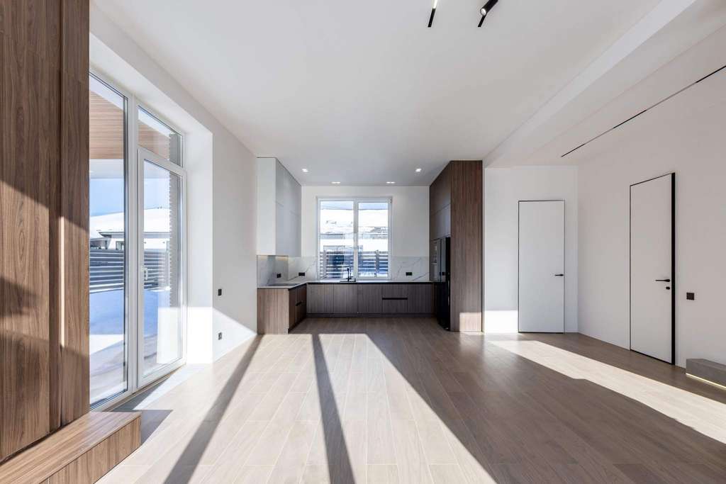 Планировка включает просторную гостиную, объединённую с кухней-столовой с выходом на террасу, вместительные гардеробные и четыре спальни. Одна из них легко трансформируется в кабинет для работы и творчества.