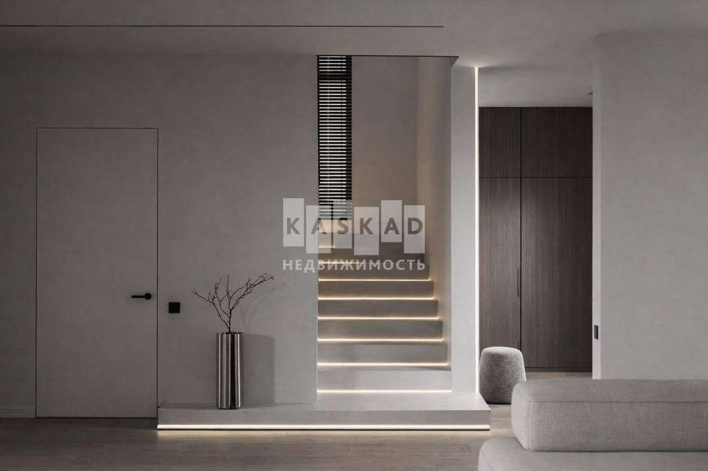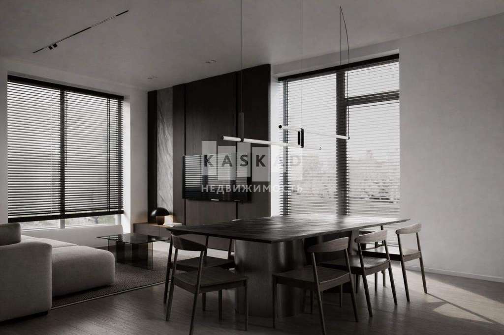 Планировка включает просторную гостиную, объединённую с кухней-столовой с выходом на террасу, вместительные гардеробные и четыре спальни. Одна из них легко трансформируется в кабинет для работы и творчества.