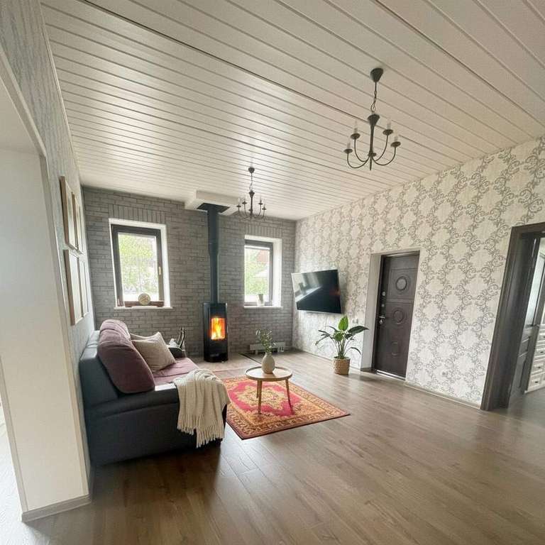 Удачная планировка дома : 4 спальни, 2 гостиные комнаты , кухня-столовая, 2 санузла. Газ, вода - скважина, канализация - септик «Топаз», электричество 15 кВт.