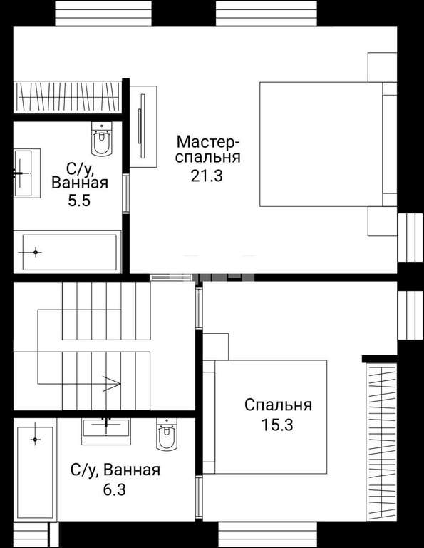 2 этаж: Три изолированные спальни, санузел.