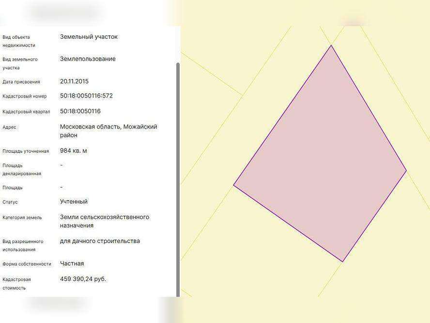 Имущество реализуется путем проведения торгов в форме аукциона в соответствии с Федеральным законом "О несостоятельности (банкротстве) " от 26.10.2002 №127-ФЗ. Земельный участок площадью 984 мкадастровый номер: 50: 18: 0050116: 572Категория земель: Земли сельскохозяйственного назначенияВид разрешенного использования: Для дачного строительствапо адресу: Московская область, Можайский р-н Прием заявок на электронной торговой площадке "МЭТС", задаток 10%. Помощь от Сбербанка - Агентский сервис по участию на торгах. Агент за Вас оформит документы, подаст заявку и примет участие на торгах. Подробнее о способах оформления сделки, стоимости приобретения имущества Вы можете узнать по номеру телефона, указанному в объявлении, в будние дни с 09: 00 до 18: 00 (по времени МСК, GMT+3) , также на сайте активов Банка Portal-DA.