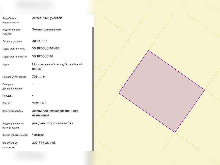 Земельный участокплощадью 701 кв. мкатегория земель: Земли сельскохозяйственного назначениявид разрешенного использования: Для дачного строительствакадастровым номером: 50: 18: 0050116: 483координаты: 55.68942074, 35.62351171