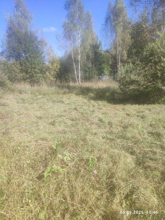 Газ и электричество на границе участка. Участок огорожен забором. Есть утепленная бытовка 6*5 м. Рядом : живописное озеро, лес, продуктовый магазин, автобусная остановка, коттеджный посёлок "Новорижские Ключи".