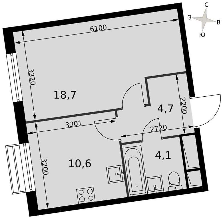 - 18.70 м2