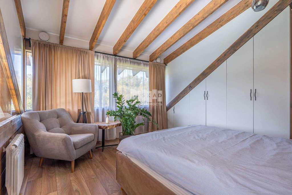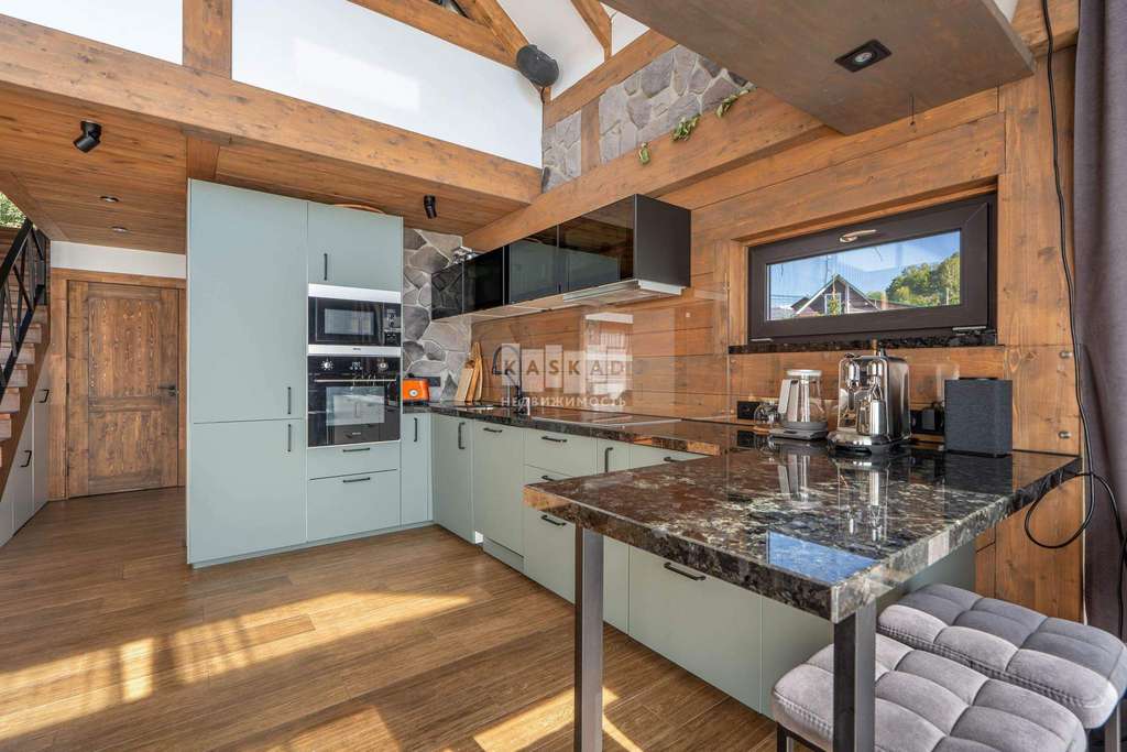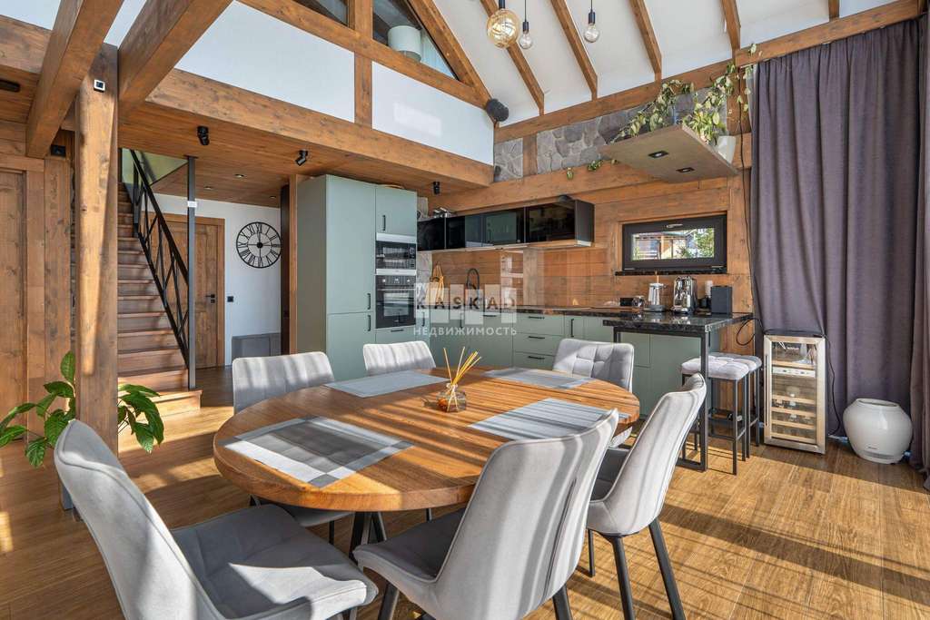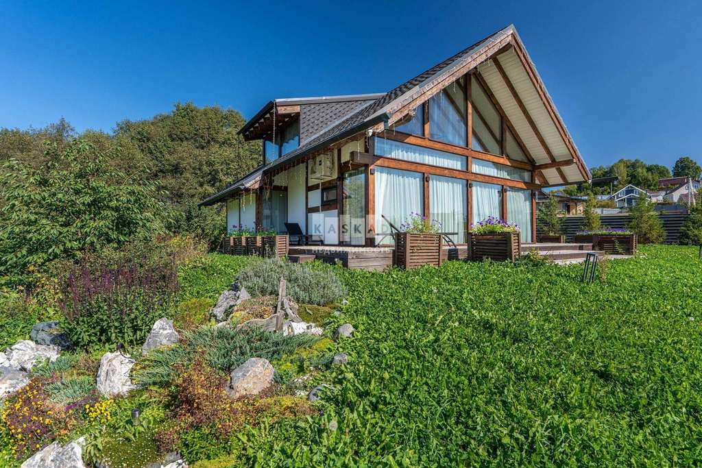 Построенный в 2022 году, дом возведен по технологии фахверк с использованием исключительно высококачественных и энергоэффективных материалов. Архитектура дома выполнена в современном стиле с большими панорамными окнами, которые гармонично вписываются в естественный природный ландшафт, подчеркнутый деревянными элементами. Внутреннее пространство дома отличает дорогая дизайнерская отделка, мебель и бытовая техника от лучших мировых производителей.