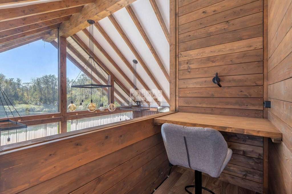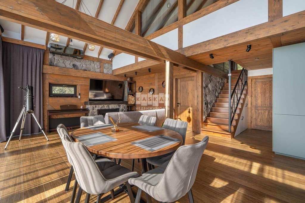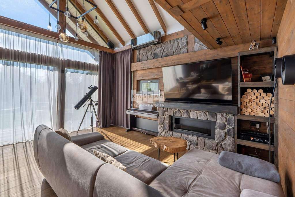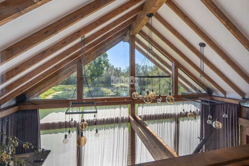 Сердцем дома является просторная гостиная с каминном, со вторым светом и панорамным остеклением, открывающим захватывающий вид на озеро. Продолжением гостиной служит летняя терраса, это идеальное место для отдыха на свежем воздухе и проведения времени с семьей и друзьями.