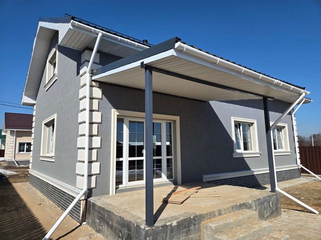 - Фасад: Штукатурка, покраска, фасадный декор; Цоколь утеплен и облицован термопанелями; выполнена отмостка;