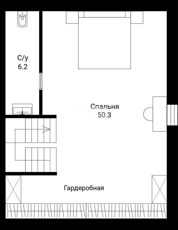 3 этаж (мансарда) : Большая светлая комната свободного назначения (кабинет, игровая, мастерская, дополнительная спальня) с собственным сан. узлом и гардеробной.
